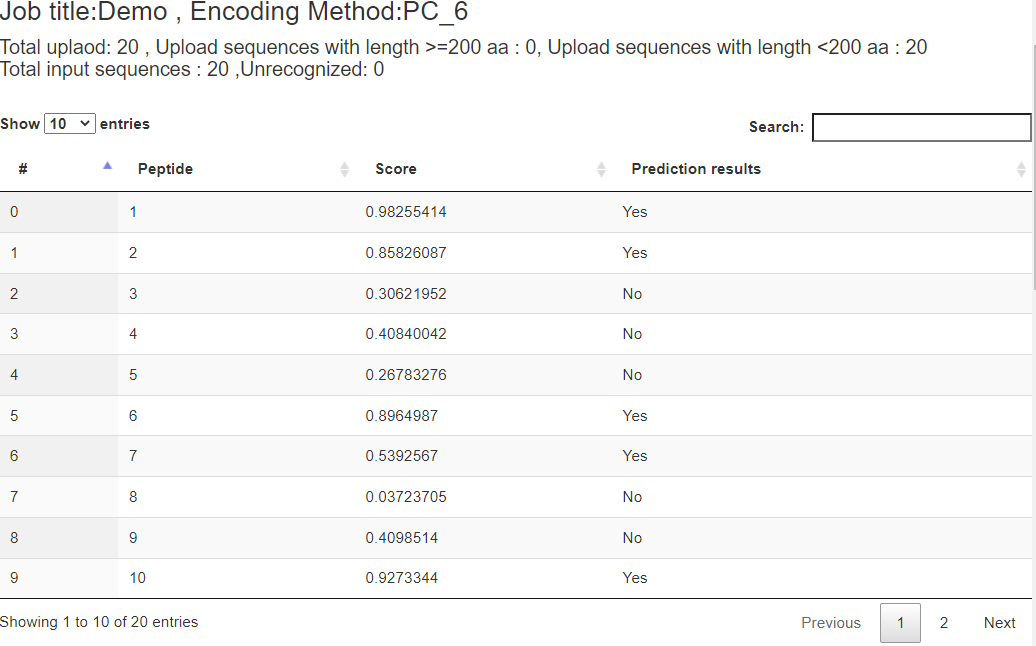 Figure 3. The prediction results of the demo FASTA file.